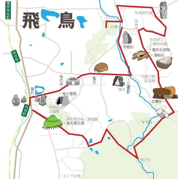 近鉄 橿原神宮前駅東口又は飛鳥駅から、奈良交通明日香周遊バス「石舞台」下車すぐ