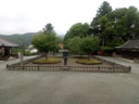 早朝の9時頃、境内には一人のお坊さんが箒を持って掃除をしていました。