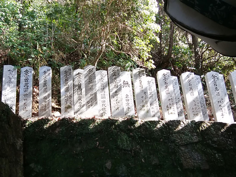 本堂を囲むように、御寄進の石柱が所狭しと並んでいます。